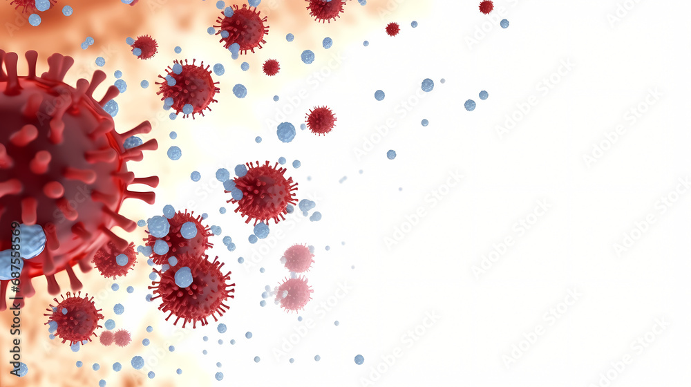 A White Background With Blue And Red Coronaviruses Wallpaper Mural - Decorly Solutions | Decorly Solutions