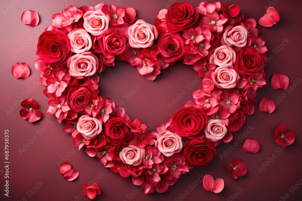 Rose Flowers Arranged In Shape Of Heart Creating Wallpaper Mural - Decorly Solutions | Decorly Solutions