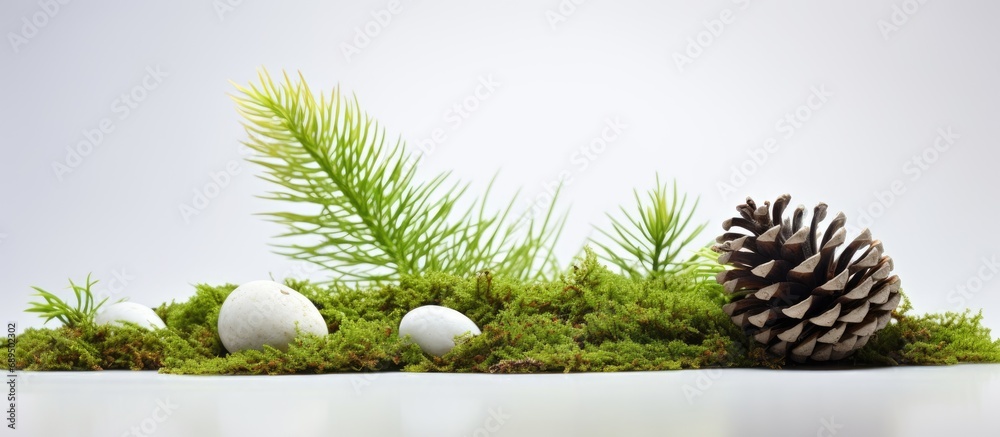 White-isolated Green Moss And Pine Cone Wallpaper Mural - Decorly Solutions | Decorly Solutions