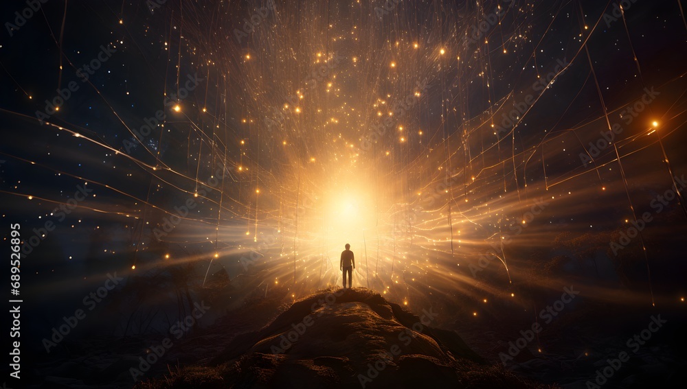 Man Standing In The Middle Of A Futuristic Wallpaper Mural - Decorly Solutions | Decorly Solutions