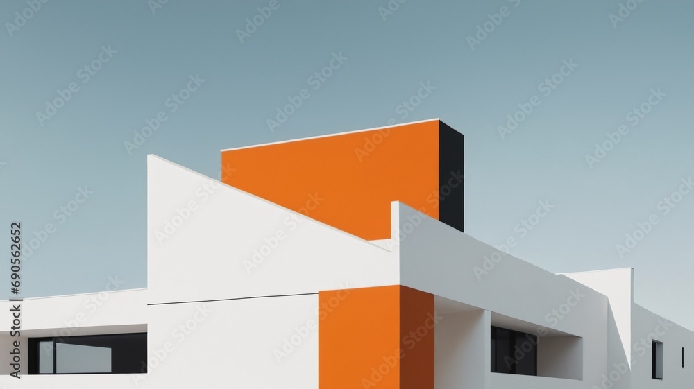 Abstract geometric shapes form minimalist structure. Clean lines and simple forms in soft pastel colors create modern architectural concept. This design balances shapes and shadows for visual appeal.