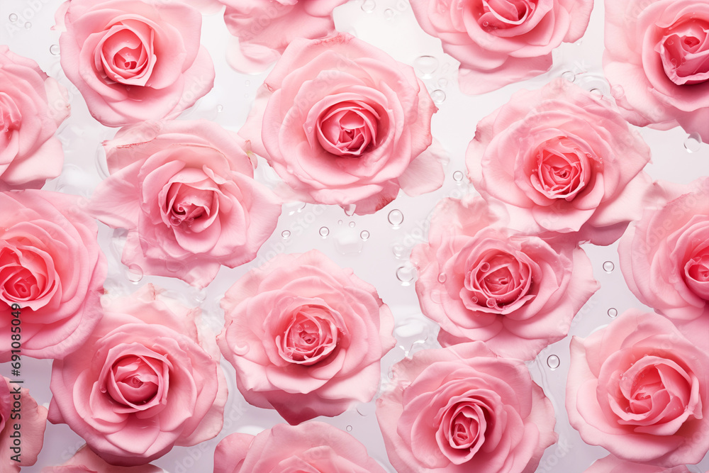 Pink Roses In Water On A White Background Wallpaper Mural - Decorly Solutions | Decorly Solutions