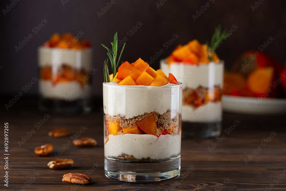 Vegan Layered Dessert In A Glasses With Persimmon Wallpaper Mural - Decorly Solutions | Decorly Solutions