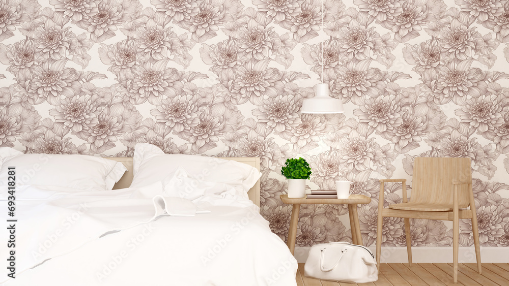 bedroom and living area in hotel or apartment - clean design - Interior design - 3D Rendering