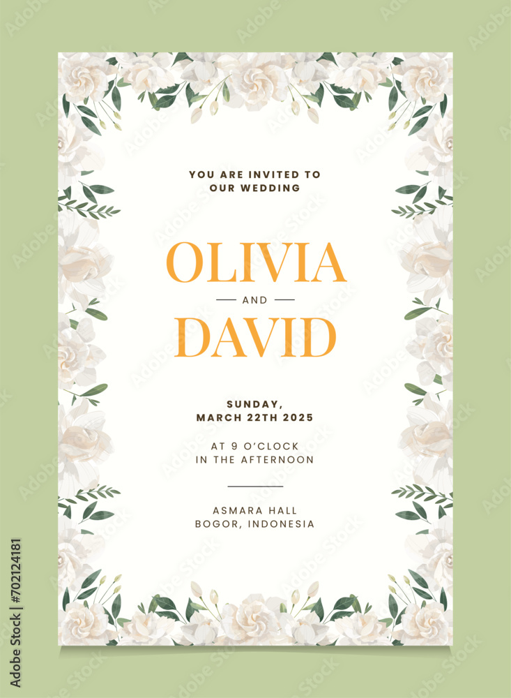 Cream Gardenia Flower Wedding Invitation Template Wallpaper Mural - Decorly Solutions | Decorly Solutions