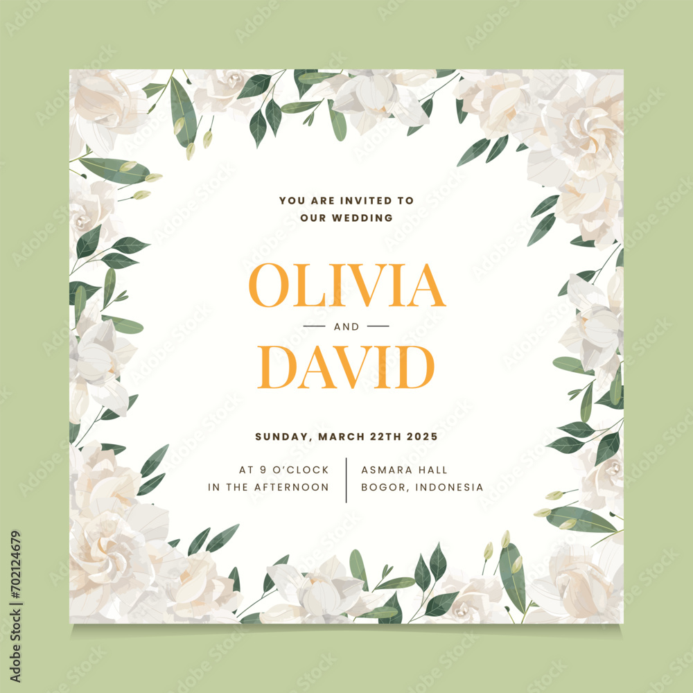Cream Gardenia Flower Wedding Invitation Template Wallpaper Mural - Decorly Solutions | Decorly Solutions