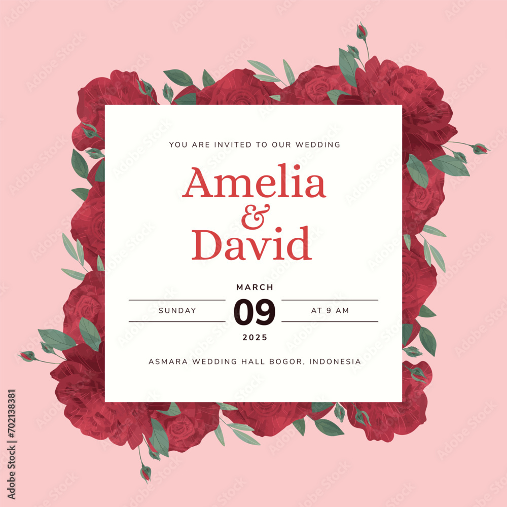 Red Rose Flower Wedding Invitation Template Wallpaper