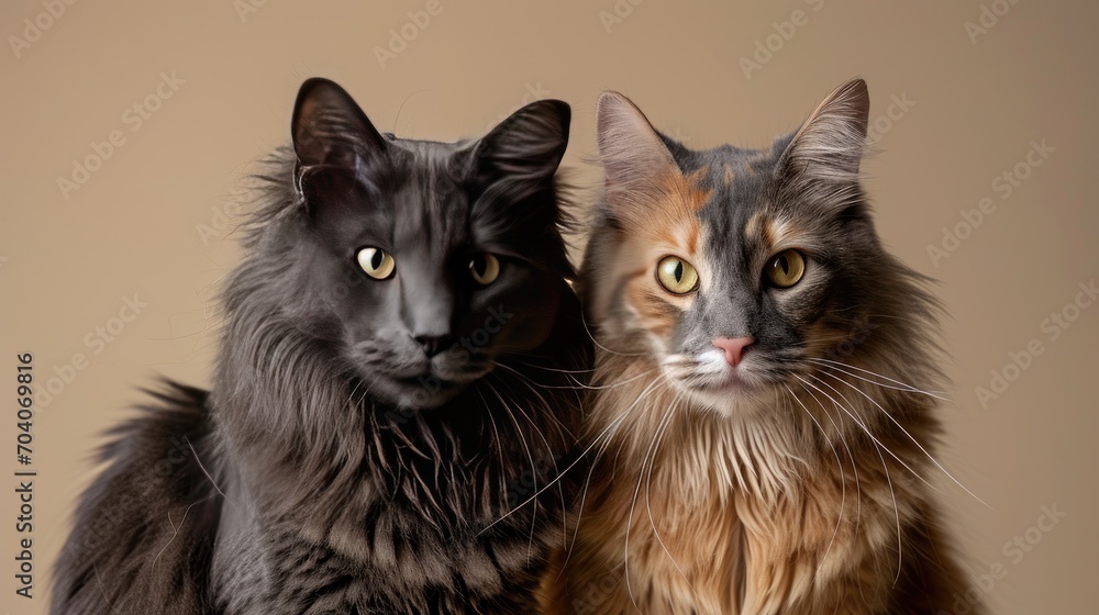 Trio of Maine Coon Cats Against Rainbow Backdrop