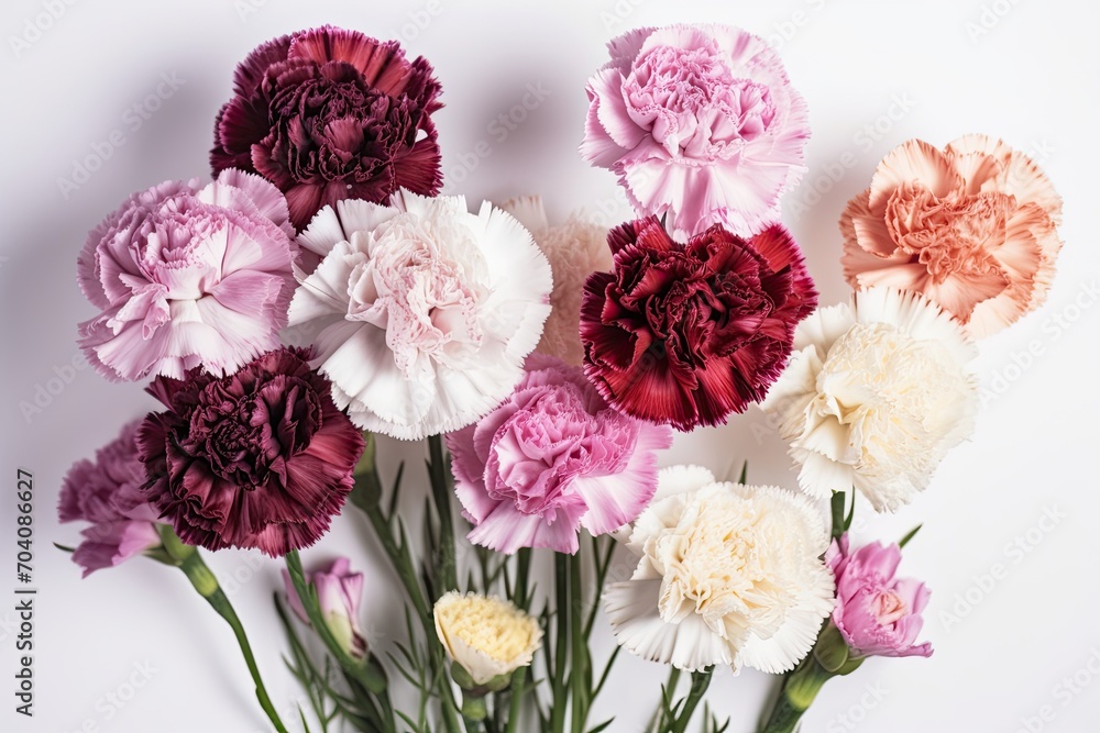 Carnations Fresh Flowers On A White Background Wallpaper Mural - Decorly Solutions | Decorly Solutions