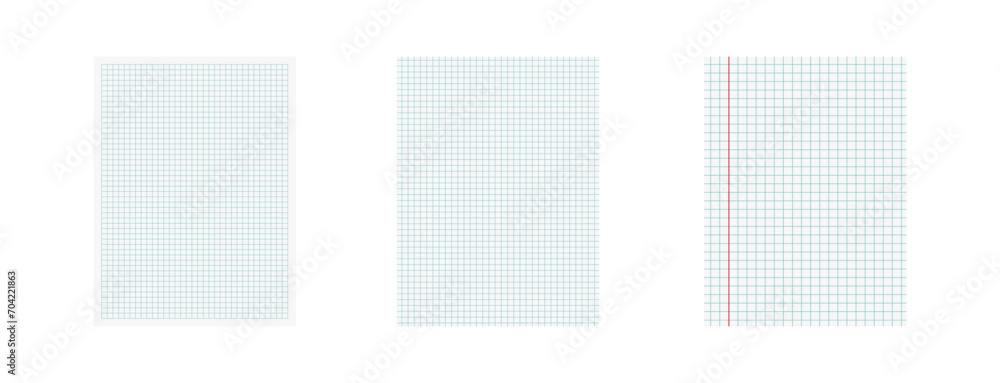 Lines paper page isolated, dots and cells notebook pattern, technical blank, grid banner set, square graph project texture, mockup template copybook, school checkered sheet backdrop
