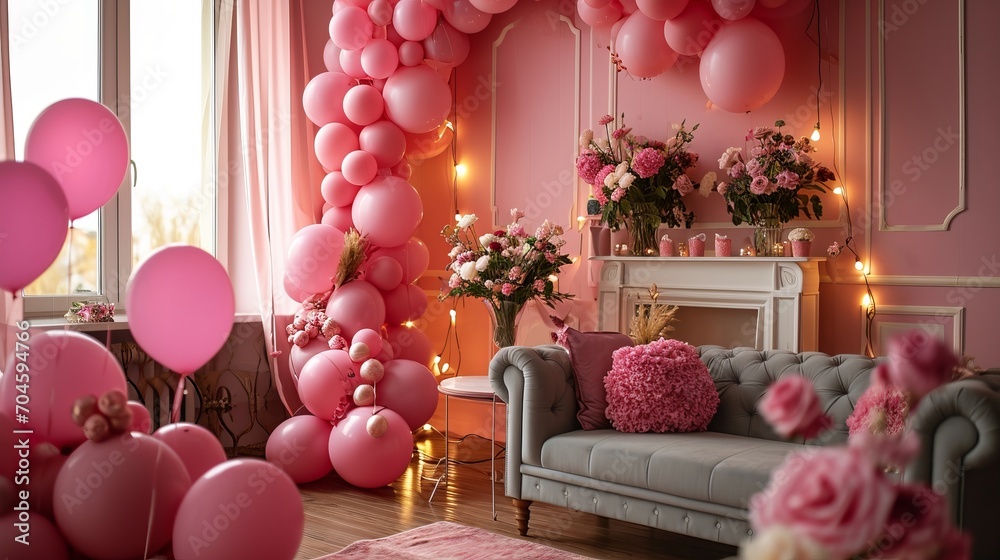 Cozy Living Room Decorated With Balloons And Flowers Wallpaper Mural - Decorly Solutions | Decorly Solutions