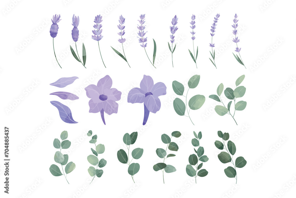Purple Lavender Flower Illustration Set Wallpaper Mural - Decorly Solutions | Decorly Solutions