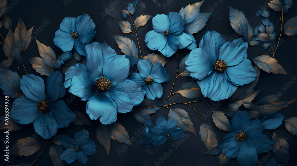 Blue Flowers Painting on Black Background