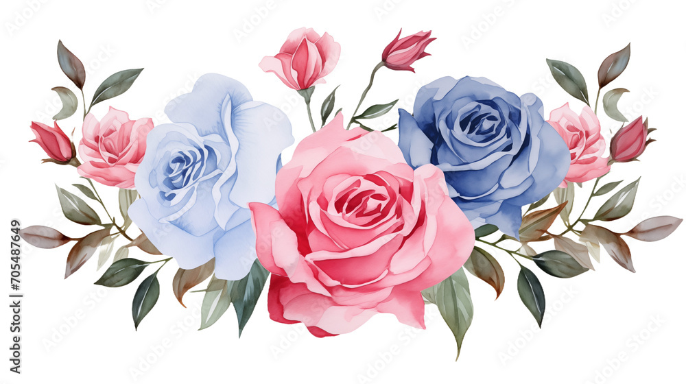 Watercolor Elements Pink Red And Blue Roses On Wallpaper Mural - Decorly Solutions | Decorly Solutions