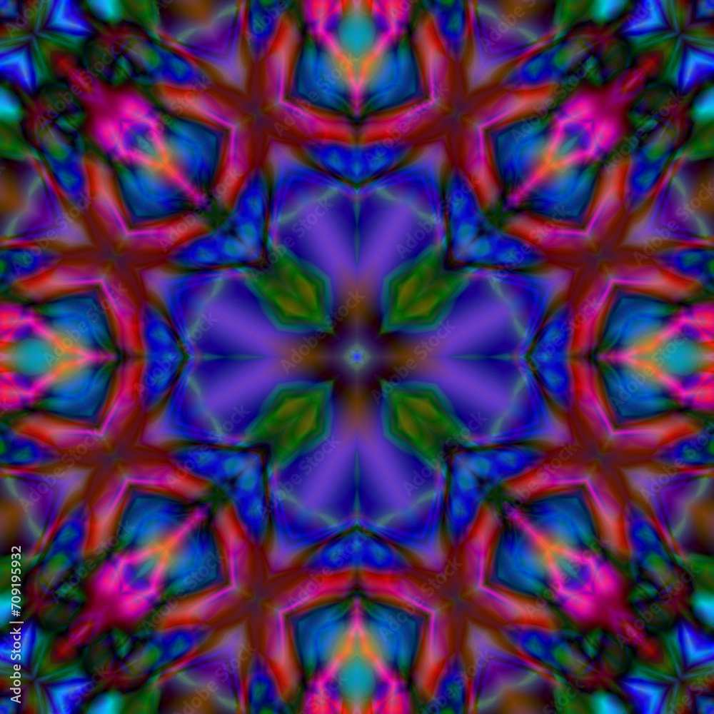 Abstract colorful seamless pattern featuring intricate interconnected ornamental stars and a detailed square grid perfect for various fabrics prints or creative applications in vibrant hues