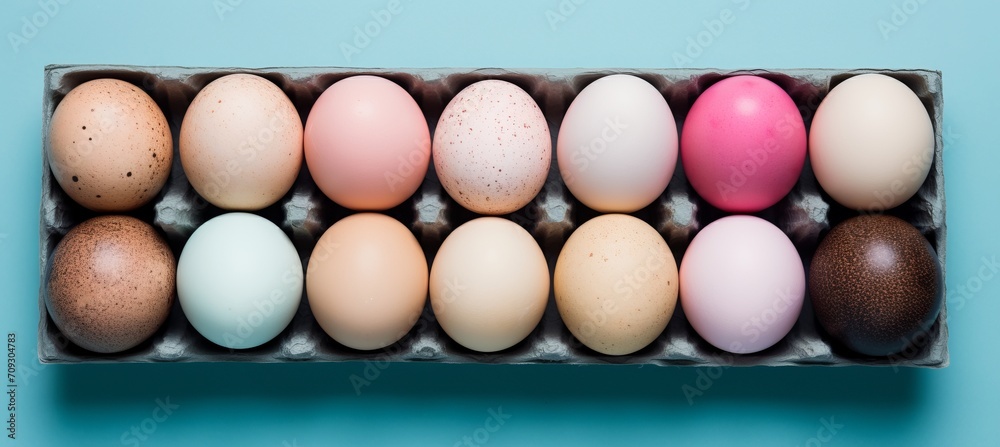 Colorful Handcrafted Easter Eggs On Blue Background Minimalistic Wallpaper Mural - Decorly Solutions | Decorly Solutions