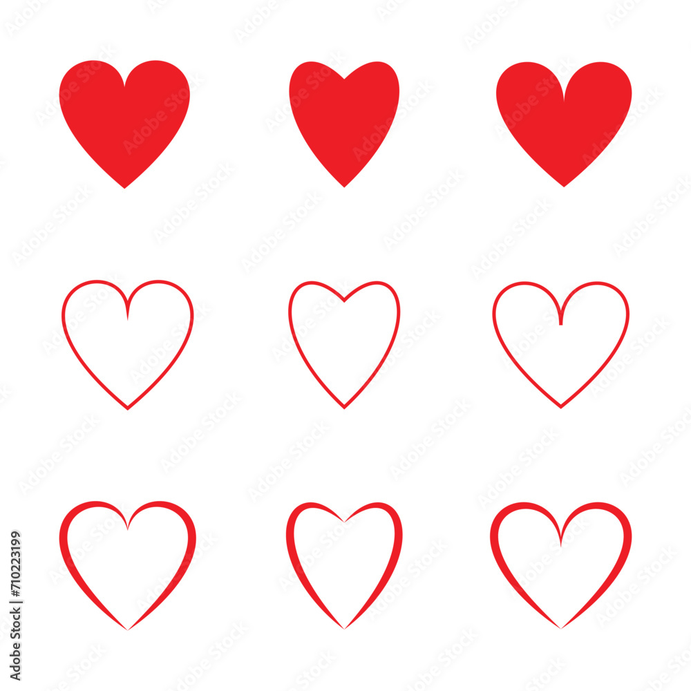 Red heart vector icons set. Flat love icon isolated on white. Heart vector for love logo, heart symbol, shape icon and Valentine's day. Cute heart vector icon for shape design, heart and love icon