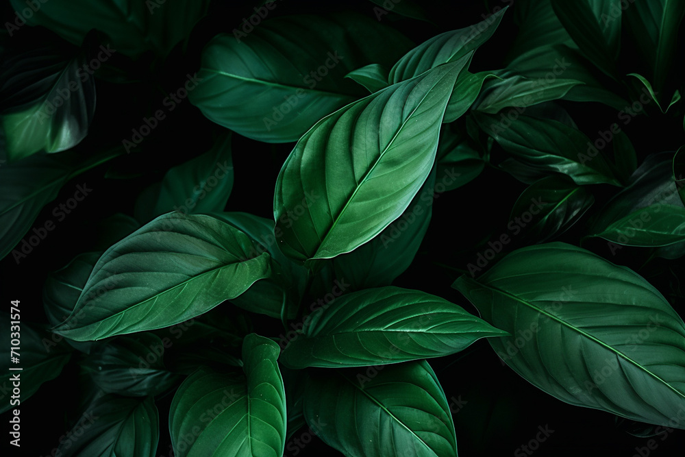 lush green leaves on dark background nature photography