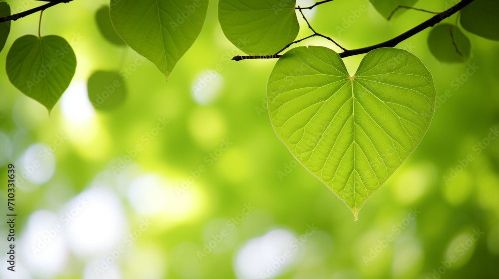 Close-up Of A Tree Branch With Heart-shaped Green Wallpaper Mural - Decorly Solutions | Decorly Solutions