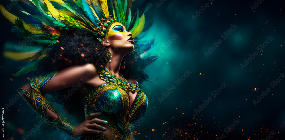 Brazilian Carnival and Samba: A Cultural Experience - Beauty Woman Dancing to the Rhythms of Samba, Infusing the Celebration with Vibrancy and the Spirit of Brazil.