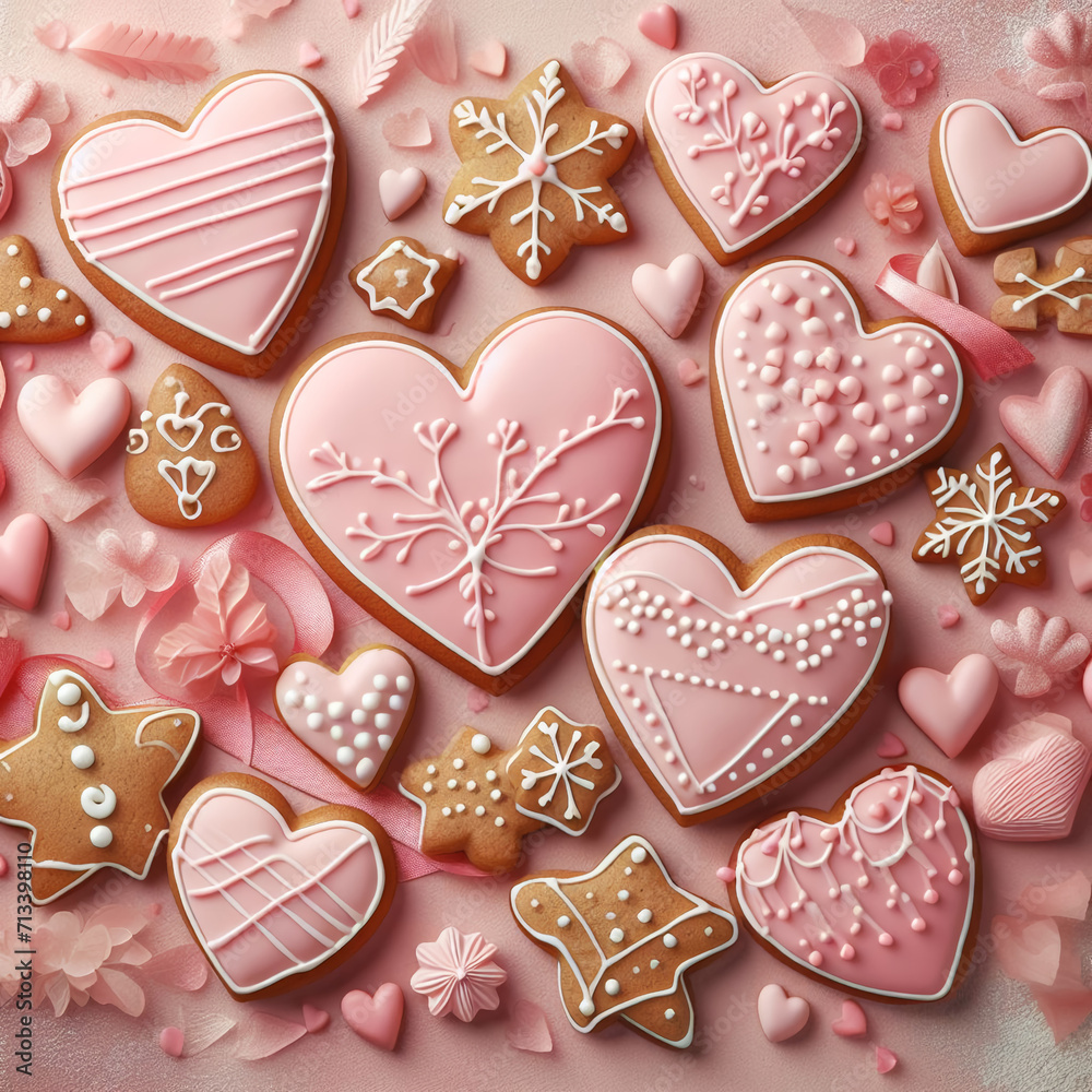 Many Pink Gingerbread Heart Shaped Wallpaper Mural - Decorly Solutions | Decorly Solutions
