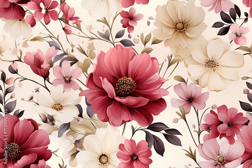 A vibrant background filled with a delicate pattern of pink and white flowers