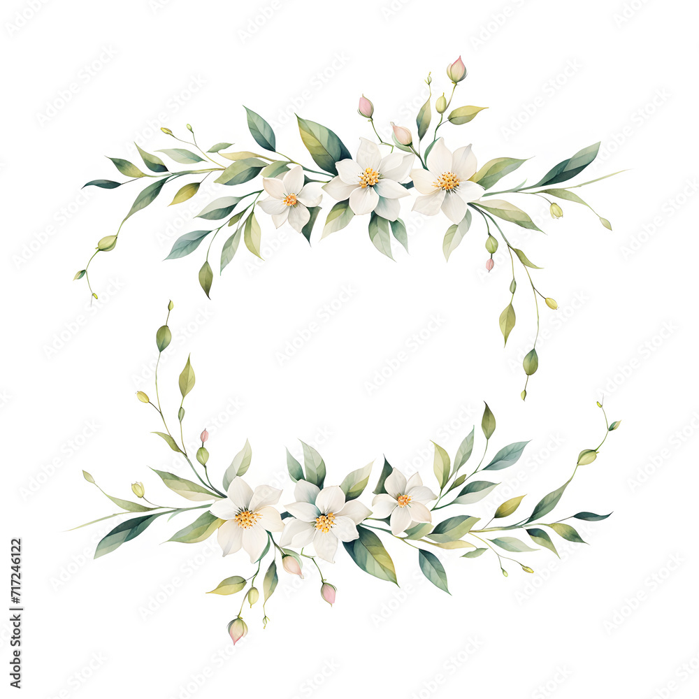 White lilies with green leaves and buds forming an arch on a watercolor background lily flower