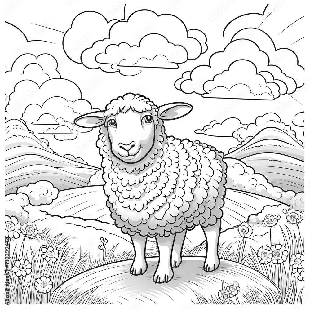 Beautiful Sheep Coloring Page Perfect Design For Your Wallpaper Mural - Decorly Solutions | Decorly Solutions