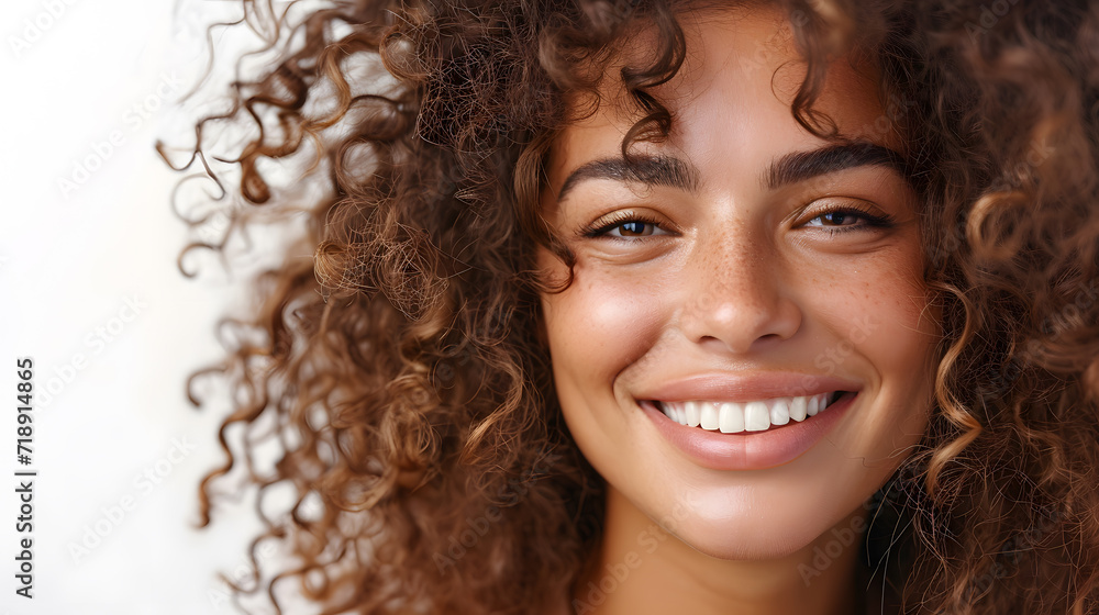 Closeup Portrait Of Beautiful Smiling Happy Woman With Wallpaper Mural - Decorly Solutions | Decorly Solutions