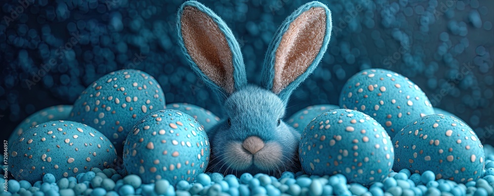 Whimsical Easter Charm Playful Bunny Amongst Speckled Blue Wallpaper Mural - Decorly Solutions | Decorly Solutions