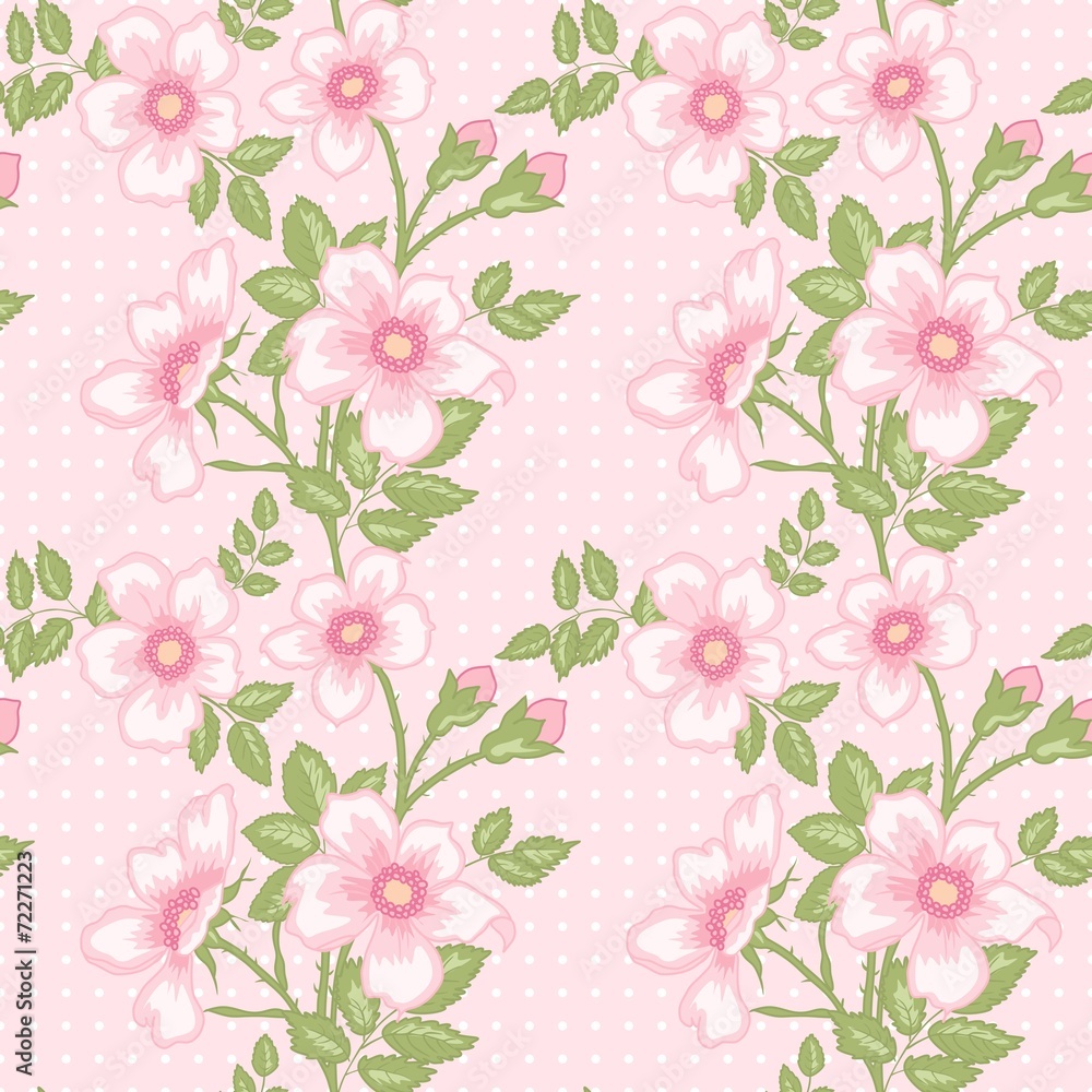Seamless Floral Pattern With Dots Wallpaper Mural - Decorly Solutions | Decorly Solutions
