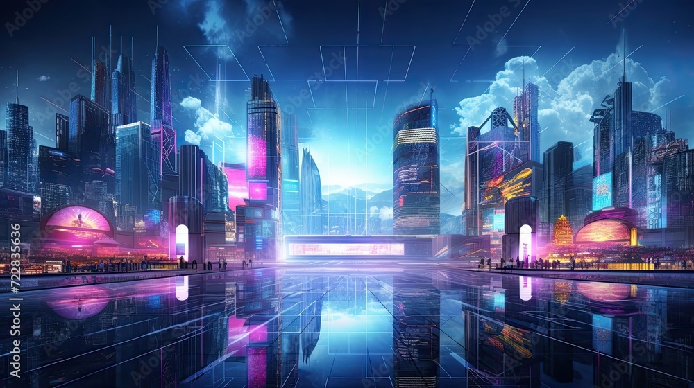 An abstract neon cityscape, capturing the essence of futuristic urbanization