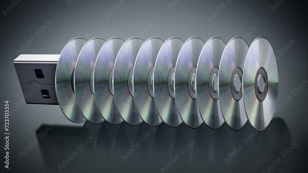 USB pen drive with stacked discs isolated on black backgroun Wallpaper