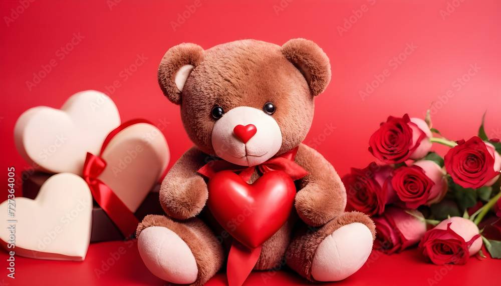 Valentine S Day Greeting Card Teddy Bear With Heart On Red Background