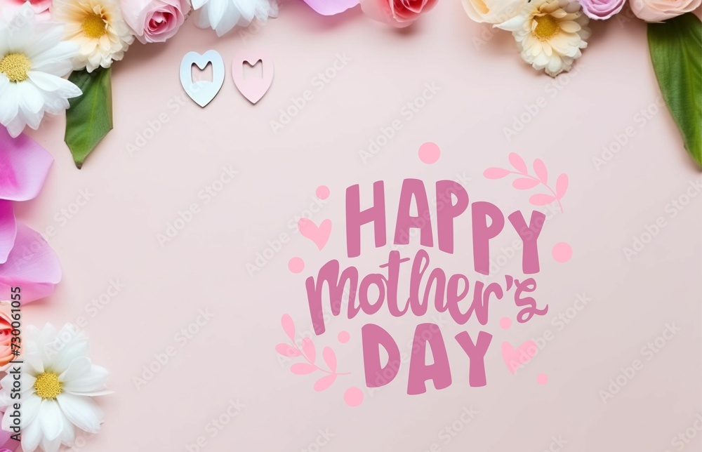 Pink flowers framing happy mother day greeting card on pink background