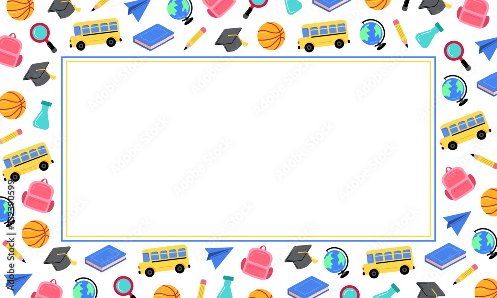 Blank White Frame on Colorful School Supplies Background – Education, Learning, and Back to School Concept Template