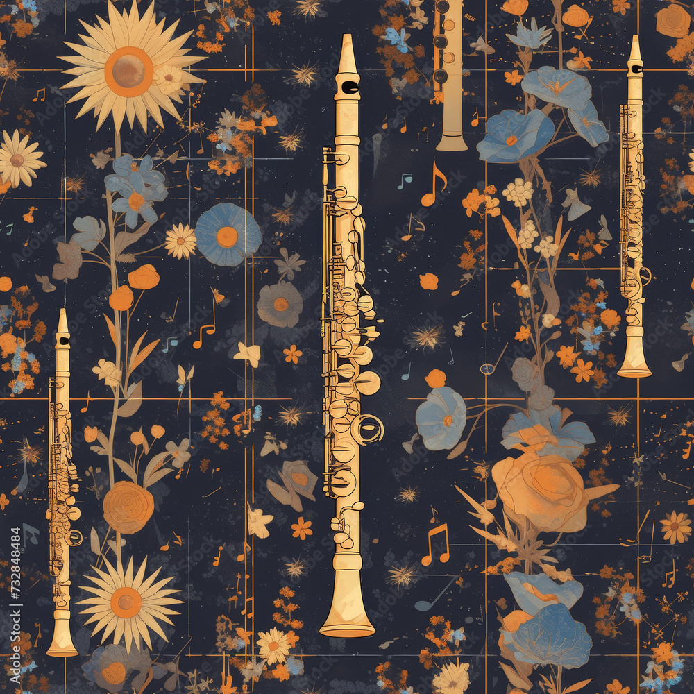 Clarinet Pale Instrument Abstract Patterns Classical Music Seamless Wallpaper Mural - Decorly Solutions | Decorly Solutions