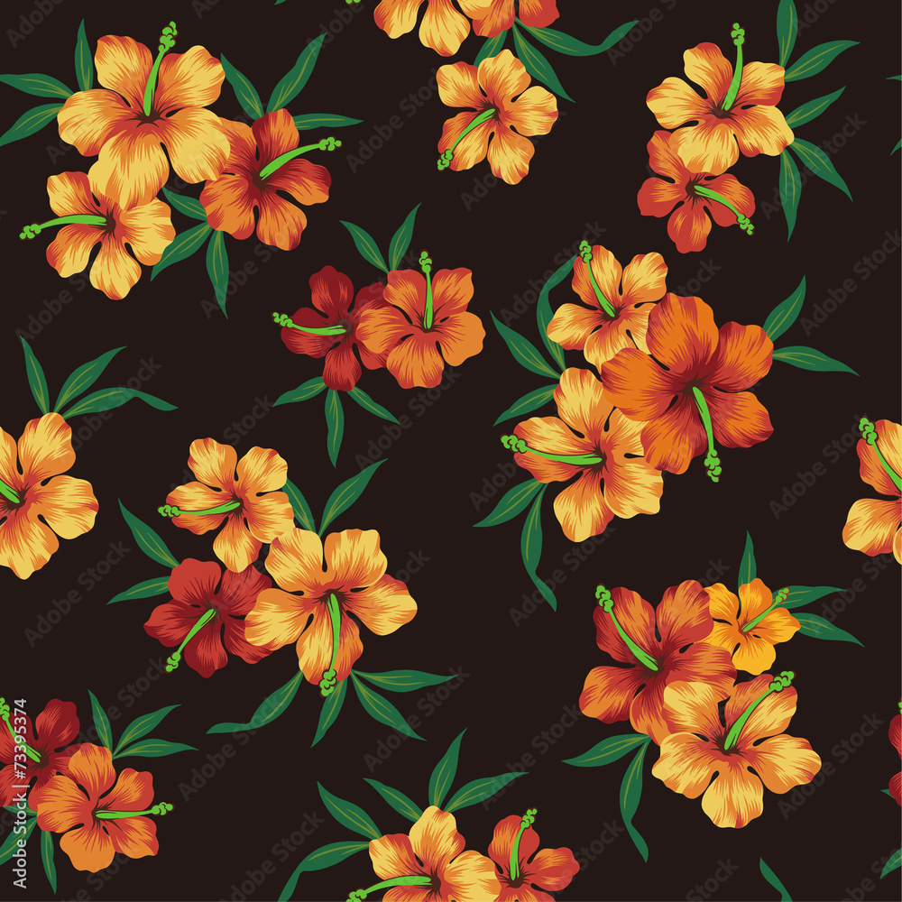 Vibrant floral pattern featuring colorful flowers and lush leaves, perfect for backgrounds and decorative designs.