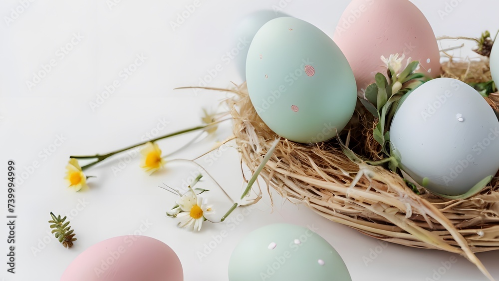 Colorful Easter Eggs In Nest On White Background Wallpaper Mural - Decorly Solutions | Decorly Solutions
