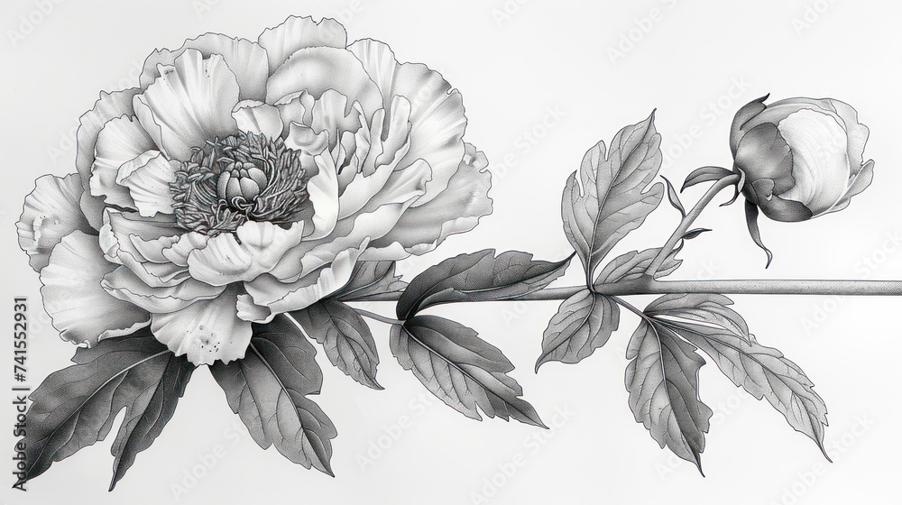 Black And White Sketch With Peony Flower Generative Wallpaper Mural - Decorly Solutions | Decorly Solutions