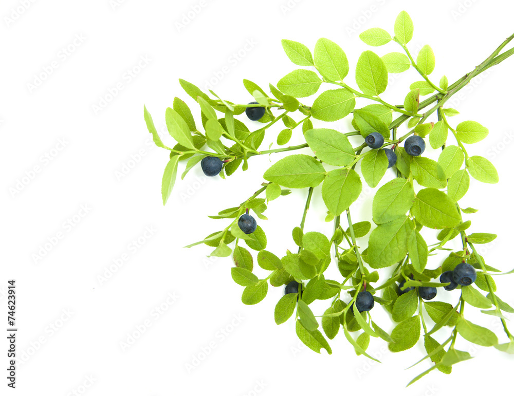ripe blueberries on the branch