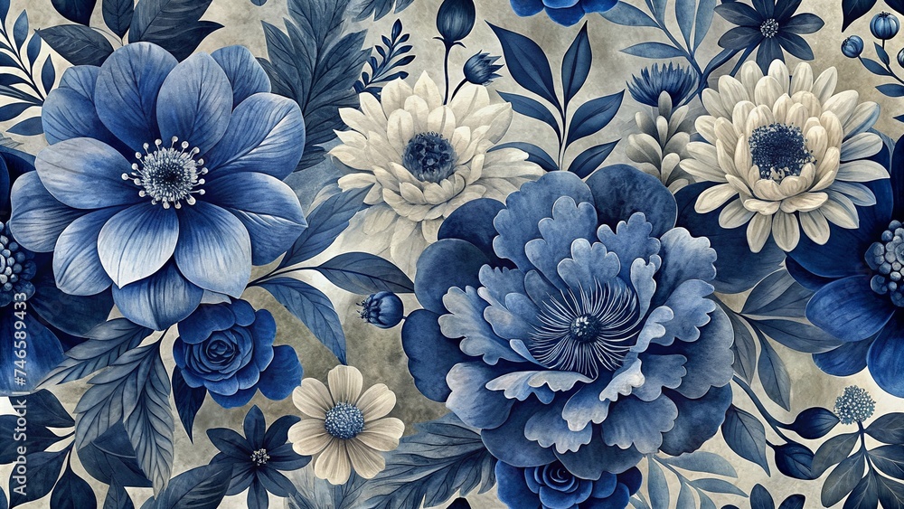 Elegant Blue Floral Pattern Design for Wallpapers and Textile Prints