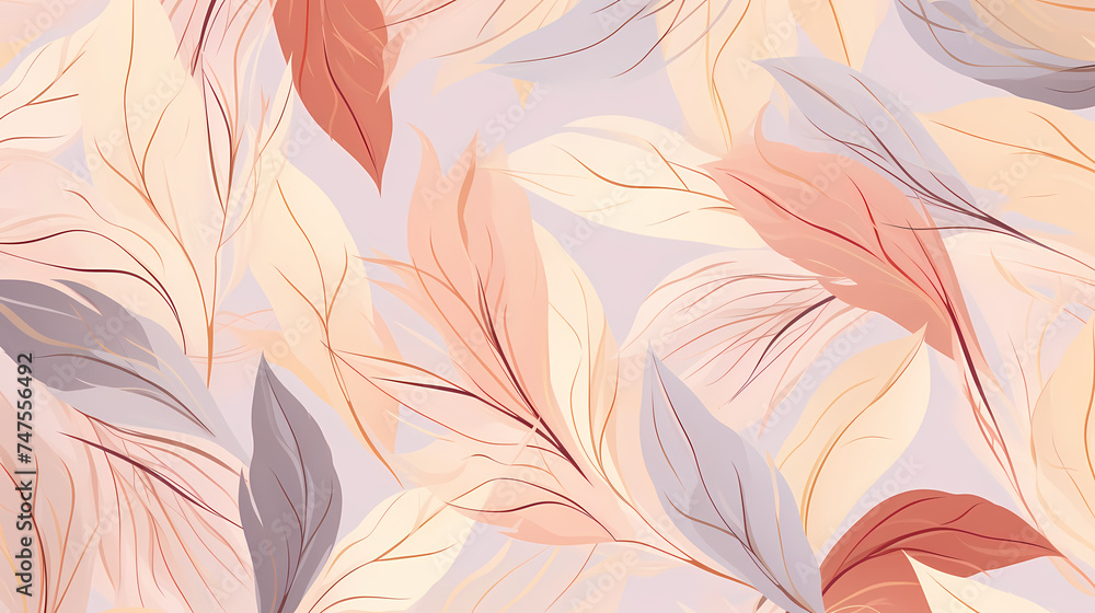 Abstract botanical leaves pattern in soft pastel colors