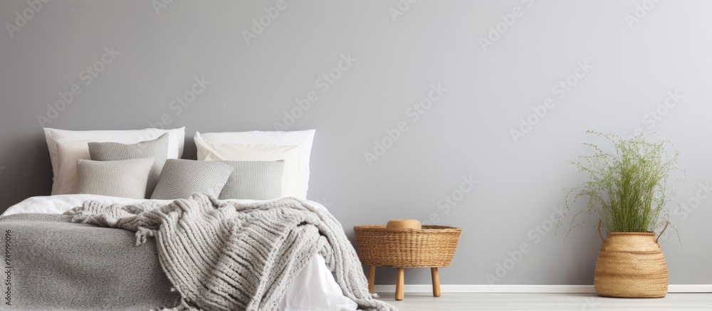 A Stylish Bedroom With A Cozy Grey Stucco Wallpaper Mural - Decorly Solutions | Decorly Solutions