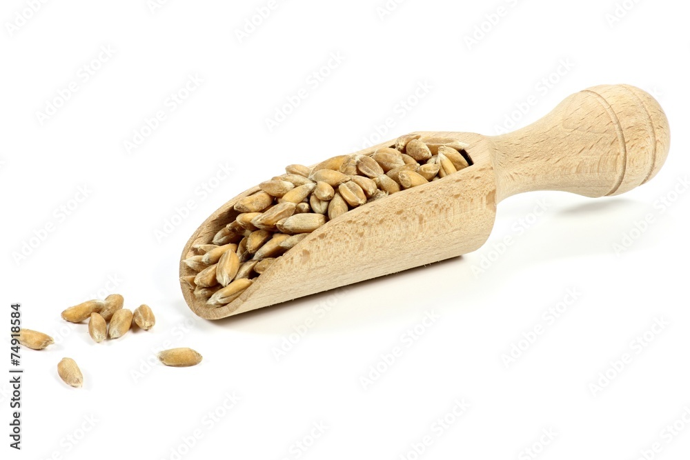 Weizenkörner in einer Holzschippe isoliert auf weißem Hinter Wallpaper