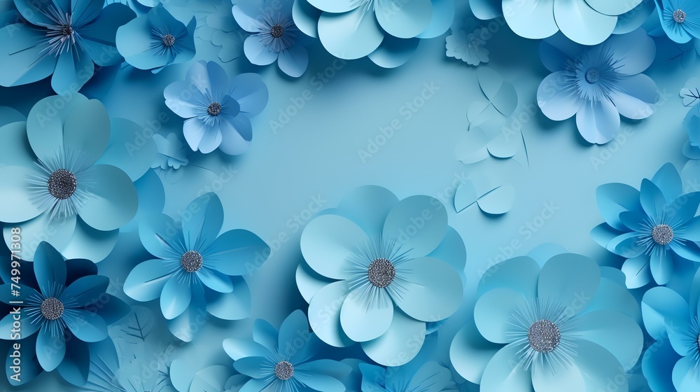 Background Of Blue Paper Flowers With Empty Space Wallpaper Mural - Decorly Solutions | Decorly Solutions