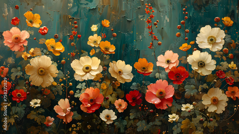 Exquisite And Detailed Painting Of Autumn-inspired Flowers With Wallpaper Mural - Decorly Solutions | Decorly Solutions