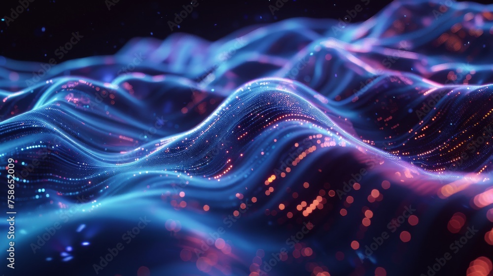 Abstract Blurry Wave Of Luminous Data Technology Background Wallpaper Mural - Decorly Solutions | Decorly Solutions