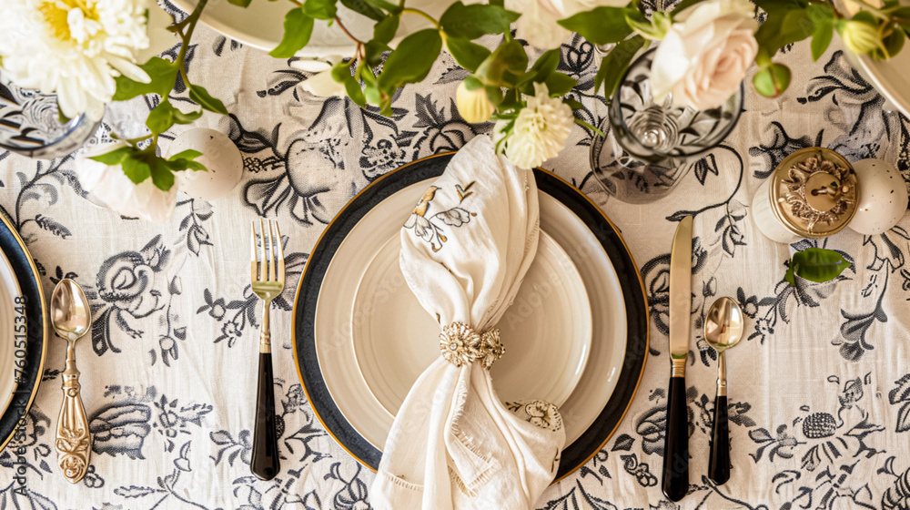 Elegant Concord tablecloth with white plates