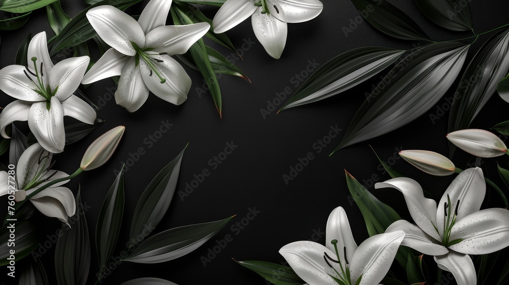 White lilies arranged artistically on a black background showcasing natural beauty and elegance